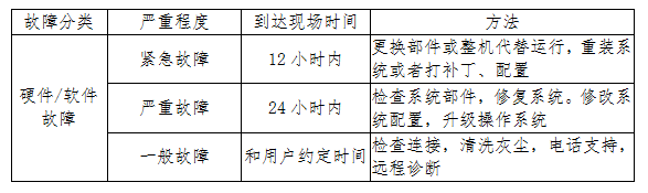 向客户提供7*24小时专人支持维护服务,响应时间在半小时以内。 响应与到达时间表: